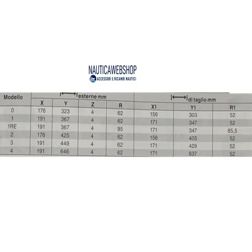 - riferimento oblo' modello 4 con misure esterne 191x646 mm e taglio 637x52 mm