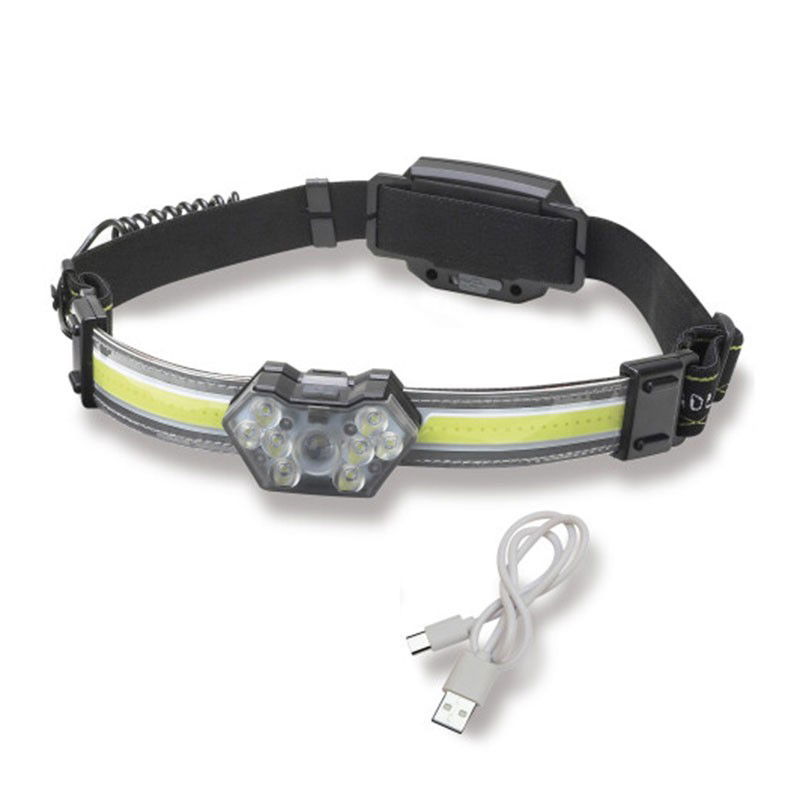 Lampada frontale ricaricabile con batteria al litio da 1500 mAh dotata di 9 LED a fuoco rapido da 3W e pannello led a fuoco indiretto. Impermeabile, con un raggio di sterzata di 60º. Messa a fuoco di 140 metri con 600 lumen.