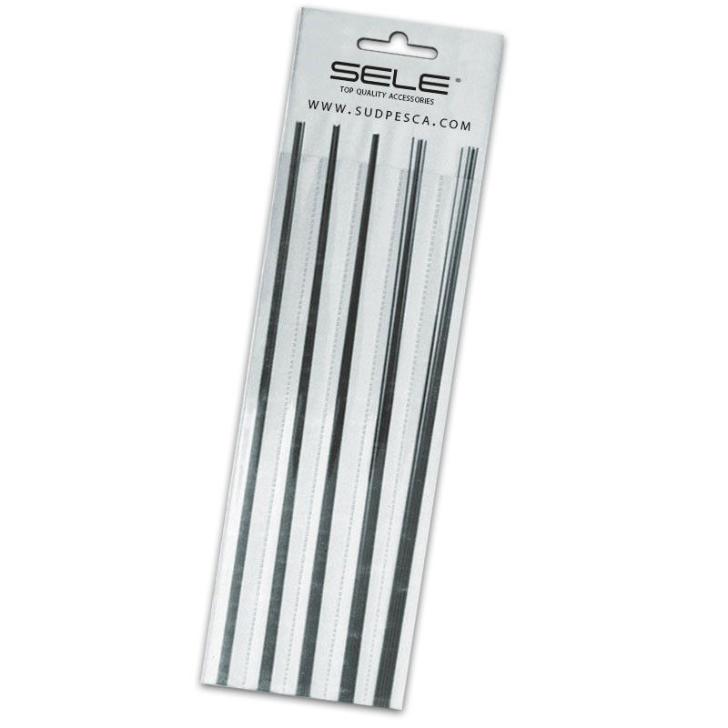 Set vette di ricambio per canne da pesca. Il Kit comprende 25 cime in carbonio solido (5 pezzi per misura) ed una cartella morbida porta cimini.