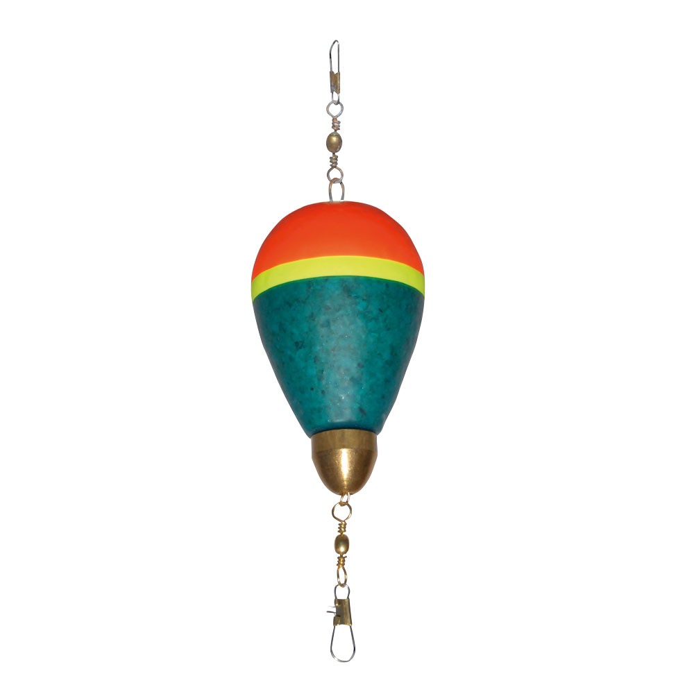 Galleggiante Agora scorrevole piombato, con corpo in sughero, girelle e moschettoni.