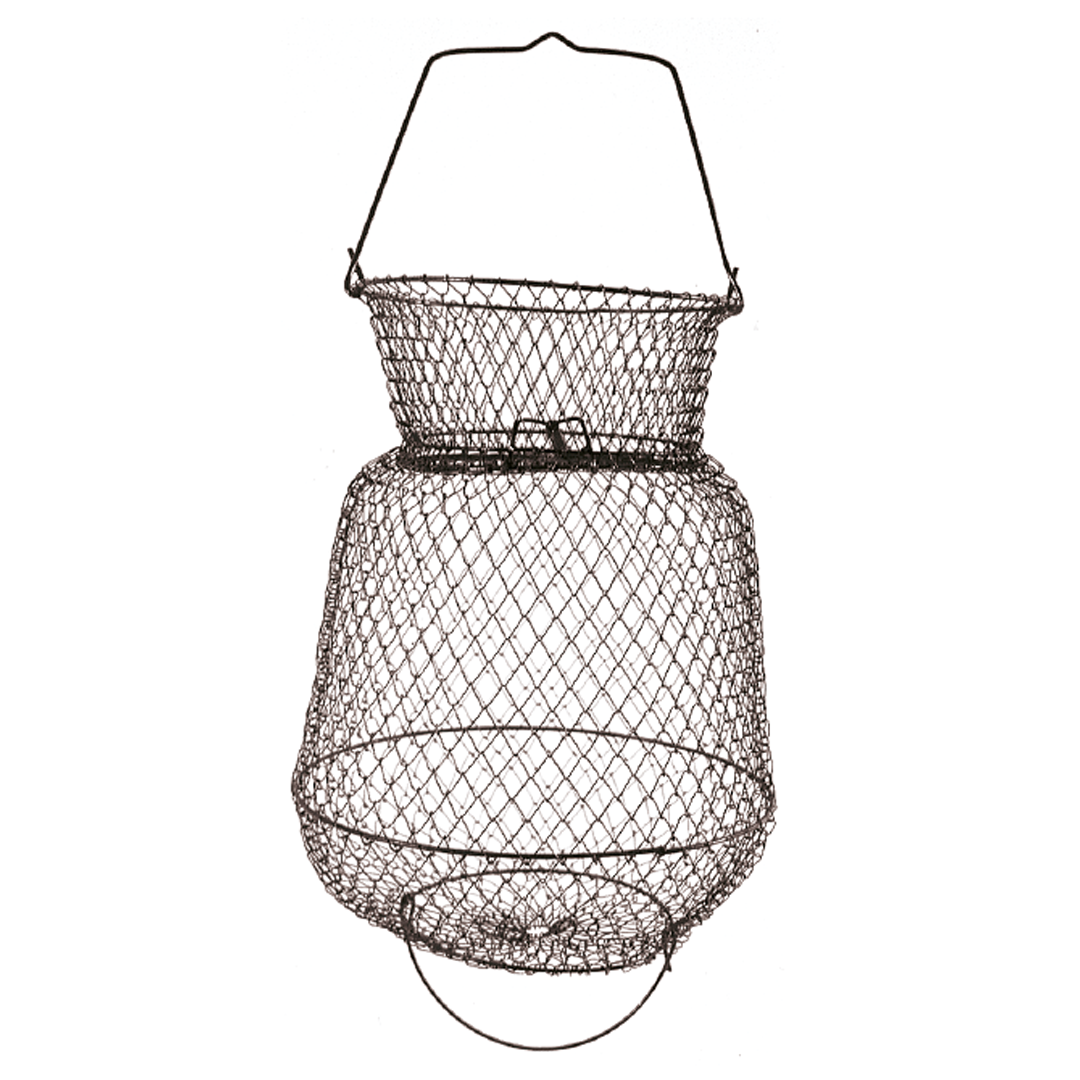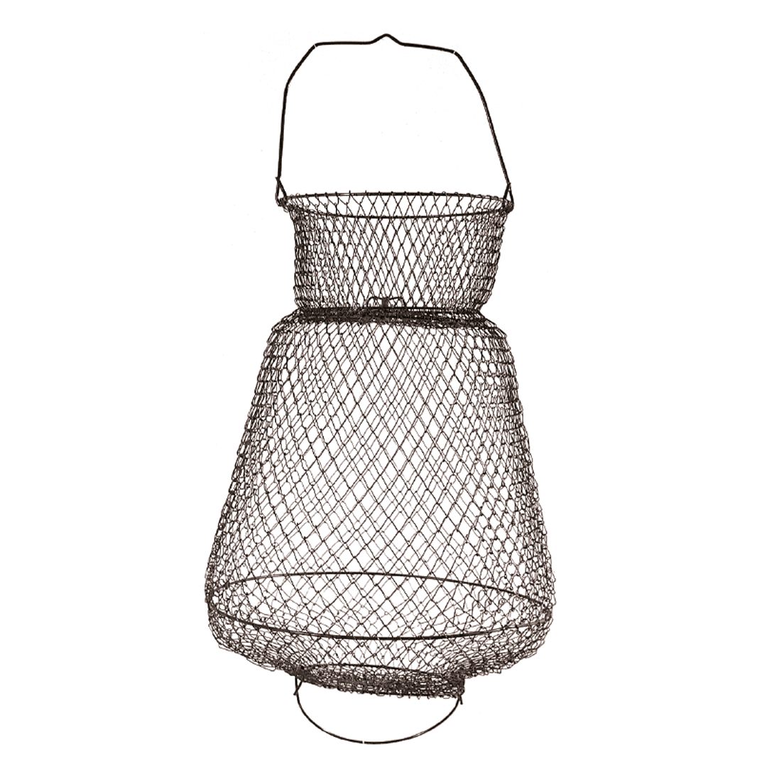 Cestello porta pesci classico in rete metallica. Con collo e maniglia, facile da trasportare in quanto si chiude su se stesso occupando pochissimo spazio. Verniciato di colore verde, è disponibile in diverse misure.