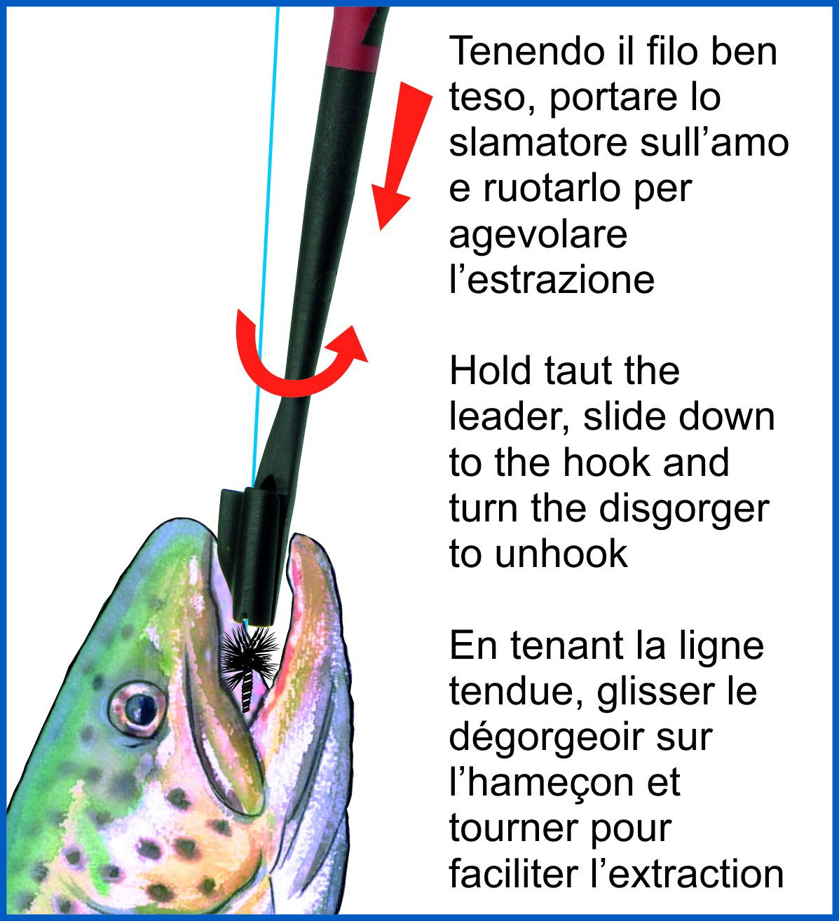 Slamatore di alta qualità con testina sagomata tubolare, studiato per una rapida estrazione dell’amo senza danneggiare la mosca ed il pesce. Prodotto con materiale molto resistente e con impugnatura anatomica in gomma. Ottimo per ogni tipo di pesca è indispensabile quando si pratica il catch and release. Munito di foro per l'aggancio al gilet.